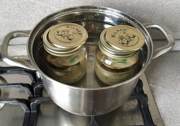 Банки отправляется на водяную баню. Чтобы они не лопнули, на дно можно положить текстильную салфетку.