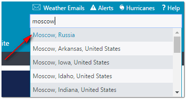 После того, как зайдете на сайт, первое, что нужно сделать - это ввести свой город в транскрипции (поисковая строка сверху, справа). Кстати, сайт сам покажет подсказки, как только вы начнете вводить свой город (пример ниже).